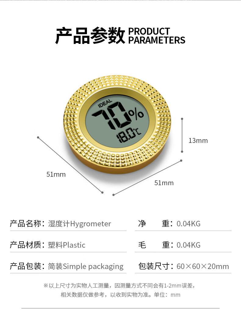 Cigar Thermohygrometer Compact and Exquisite Accurate Sensitive 2-in-1 Multifunctional Thermometer CLK-2023IH