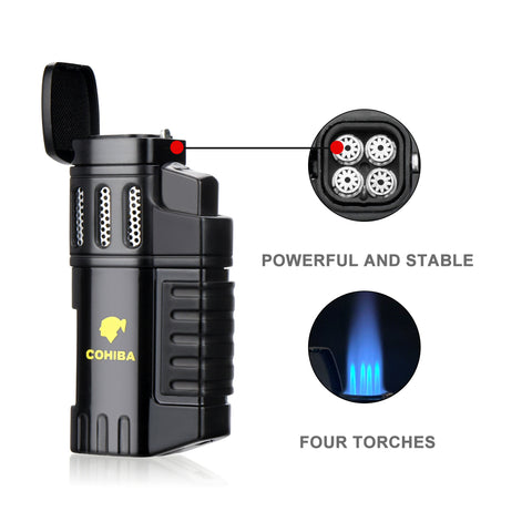Cigar Lighter 4 Torch Jet Flame Refillable With Punch