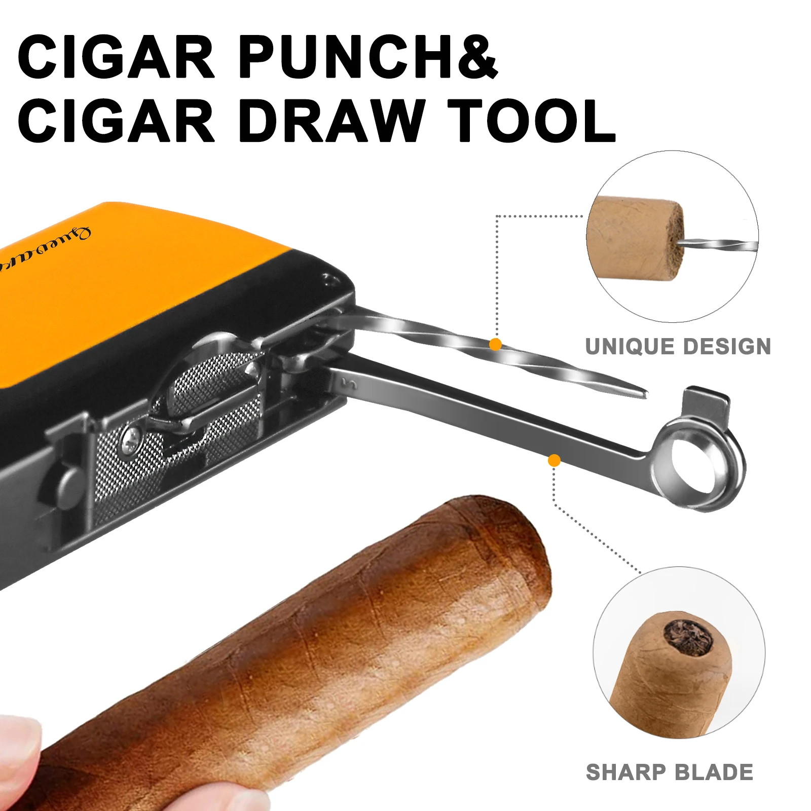 Guevara Metal Windproof Cigar Lighter Single Jet Flame Torch Cigarette Lighters with Cigar Punch Needle Gift Box Pocket Lighters