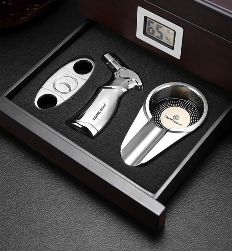 Cigar Box With Cigar lighter Cutter Ashtray Set
