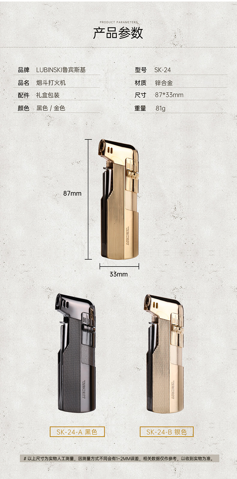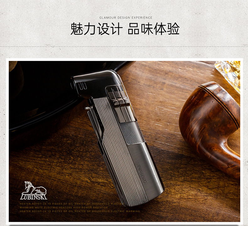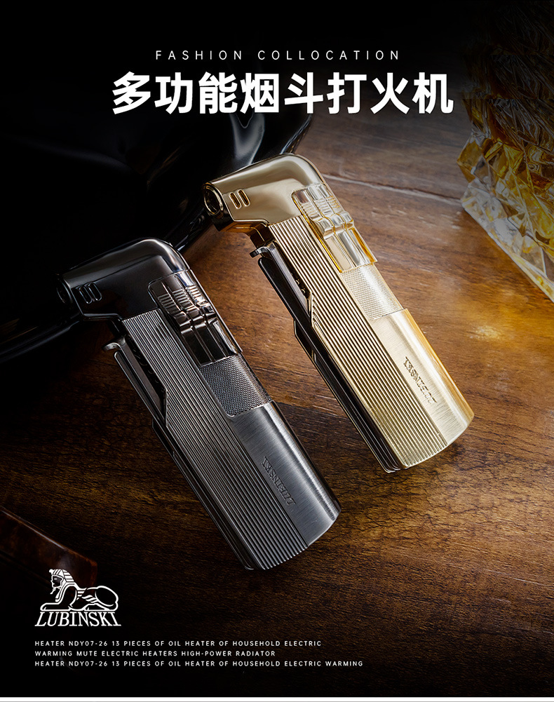 Lubinsky LUBINSKI pipe lighter, zinc alloy electroplated oblique fire three-in-one open flame lighter